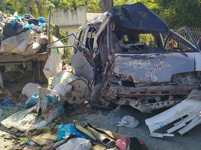 Al menos 14 personas, incluyendo 10 estudiantes menores de edad, resultaron heridos la tarde de este lunes tras el choque entre un minibús de transporte escolar y un camión recolector de basura en el tramo carretero Jamo–Barranca, en el municipio de La Vega.