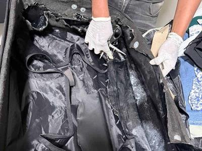 Al revisar el equipaje, los agentes encontraron en cada maleta una lámina camuflada en su interior, que contenía un polvo blanco presumiblemente cocaína.
