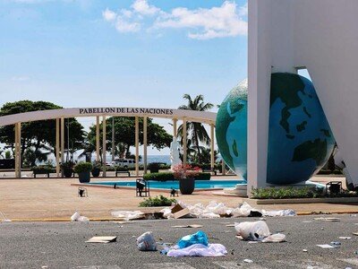 La rotonda del Centro de los Héroes, en el Distrito Nacional, se encontraba con una gran concentración de desperdicios, luego de que ayer, viernes 13 de febrero, se celebrara una actividad oficial, encabezada por el presidente de la República, Luis Abinader.