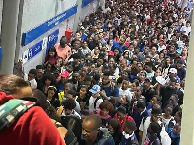 En otras imágenes suministradas al medio se observan a miles de personas apesñucadas en la estación de la Máximo Gómez.