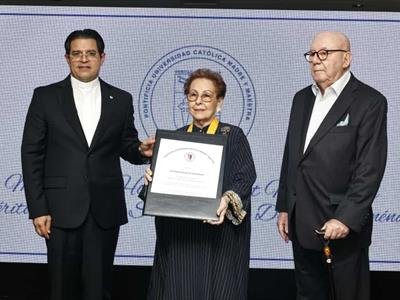 La Pontificia Universidad Católica Madre y Maestra (Pucmm) otorgó este jueves a Xiomara Dájer de Menéndez la medalla de honor Mater et Magistra en Trabajo Social, recientemente creada para reconocer a quienes, con su labor humanista, impactan positivamente a la sociedad.