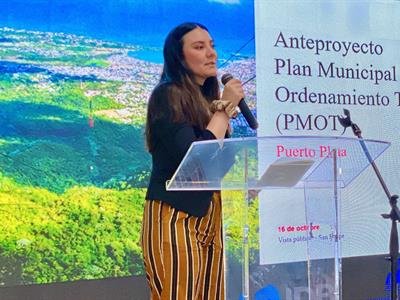 La arquitecta Egna Rojas, representante de la firma ARUP, responsable de la estructuración técnica del plan, presentó los objetivos y beneficios del PMOT, entre ellos la regulación del uso del suelo, la planificación de edificaciones y la protección de los recursos naturales.
