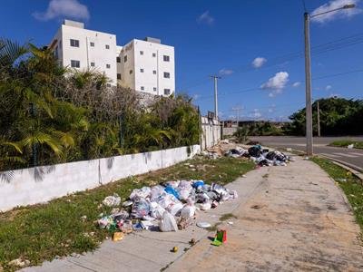 También en la Ciudad Juan Bosch, desde su entrada, se observan vertederos improvisados repletos de basura, así como desechos en sus alrededores, una situación que se repite igualmente en el residencial Dos Amigos.