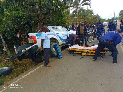 Tras la alerta, una unidad de los bomberos fue despachada de inmediato hacia el lugar del incidente. Al llegar a la escena, los socorristas encontraron involucrada una camioneta perteneciente a la Policía Nacional, en la cual se trasladaban varios miembros de esa institución.