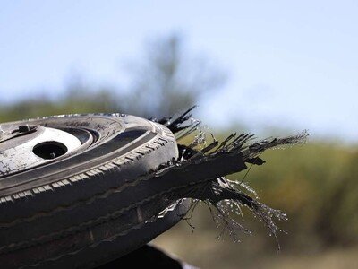 Al autobús ficha 19 se le reventó un neumático cuando circulaba a alta velocidad. En imágenes tomadas por Diario Libre en el lugar se observan las gomas desgastadas.